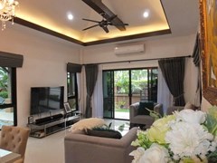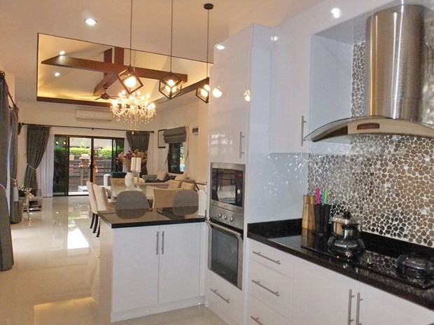 PATTAYA REAL ESTATE: House for Sale Pattaya, land size 416 sqm, living area 180 sqm, 3 bedrooms, 2 bathrooms, European-style kitchen, fully furnished, garden, private swimming pool, Sala, 24-7 security