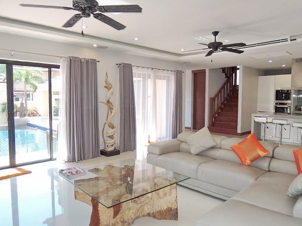 A most impressive pool villa for rent in a gated community just a short walk from Bangsaray beach and its seafood restaurants.