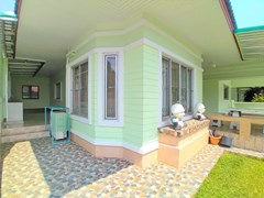 PATTAYA REAL ESTATE: House for rent North Pattaya , land size 340 sqm, living area 150 sqm approx., 3 bedrooms, 2 bathrooms, European-style kitchen, fully furnished, lawn garden, communal swimming pool, carport, 24-7 security