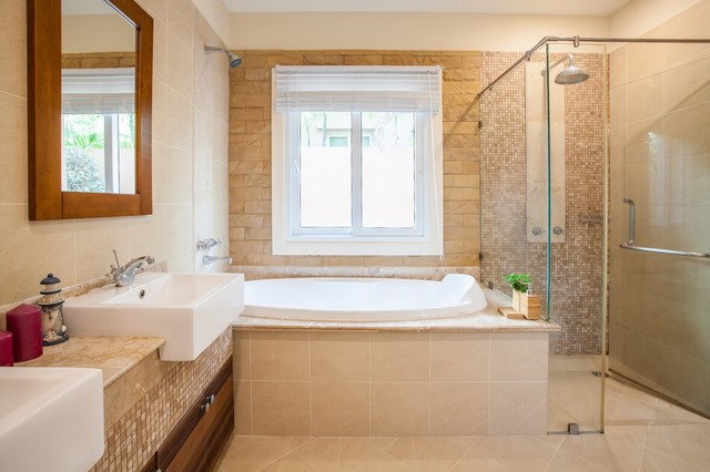 Separate bathroom with glass shower cubicle