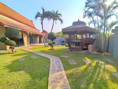 Thai Bali-style pool villa for rent set on 1/2 Rai of land, in a quiet yet convenient East Pattaya location with easy access to international schools and Lake Mabprachan