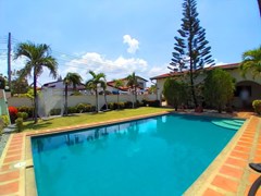 PATTAYA REAL ESTATE: House for rent East Pattaya with private swimming pool, land size 500 sqm, living area 300 sqm approx., 4 bedrooms, 4 bathrooms, private swimming pool, lawn garden, fully furnished, mezzanine floor with pool table, 24-7 security