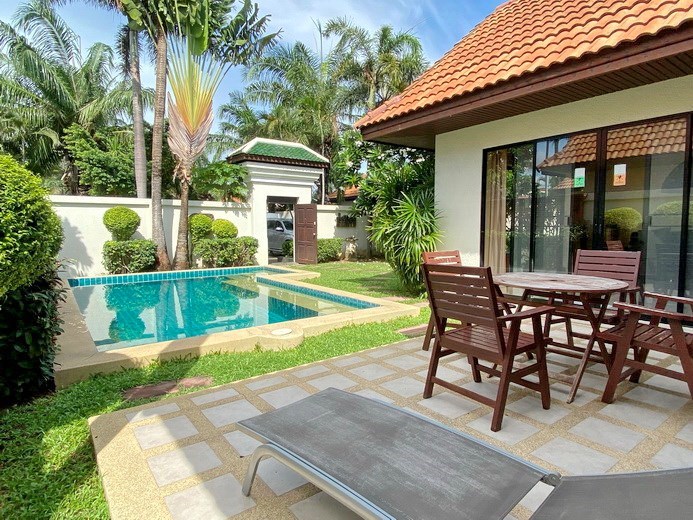 PATTAYA REAL ESTATE: View Talay Villa for Rent, located only 500m to Jomtien Beach, land size 200 sqm, living area 75 sqm aprox, 1 bedroom, 1 bathroom, European-style kitchen, fully furnished, Private swimming pool, Terraces, Garden, Resort facilities, 24-7 security